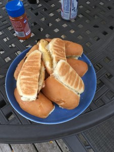 I already addressed the need for a sturdy sausage roll or bakery-tough bun to stand up to the heat of the grill. If you’ve got to use a bread knife to split them open, that’s a good sign. I make sure not to separate the two halves when I cut them, instead, leaving them connected like a good “slipper shell” you might uncover on a walk down the beach.