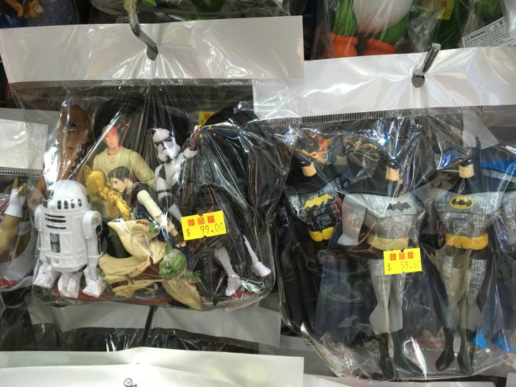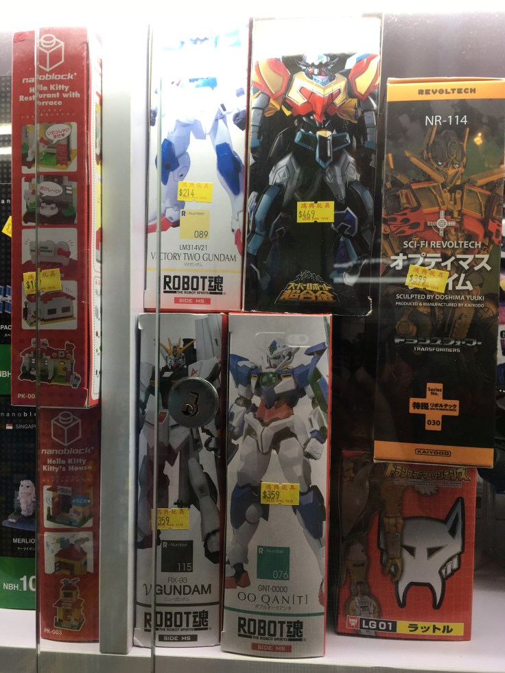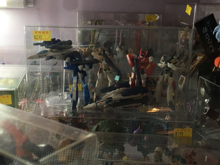 Some of the more notable things I’d only pick up here were the sealed bags of plastic toys for about $5 to $8 USD capturing uncountable iterations of novelty: basketball teams, Minions, Ninja Turtles, batmen, Star Wars figures squeezed from a mold Kenner never had anything to do with. And I appreciated the stacks and stacks of Robotech/Macross mechs that would have glued me to the floor as a ten-year-old.