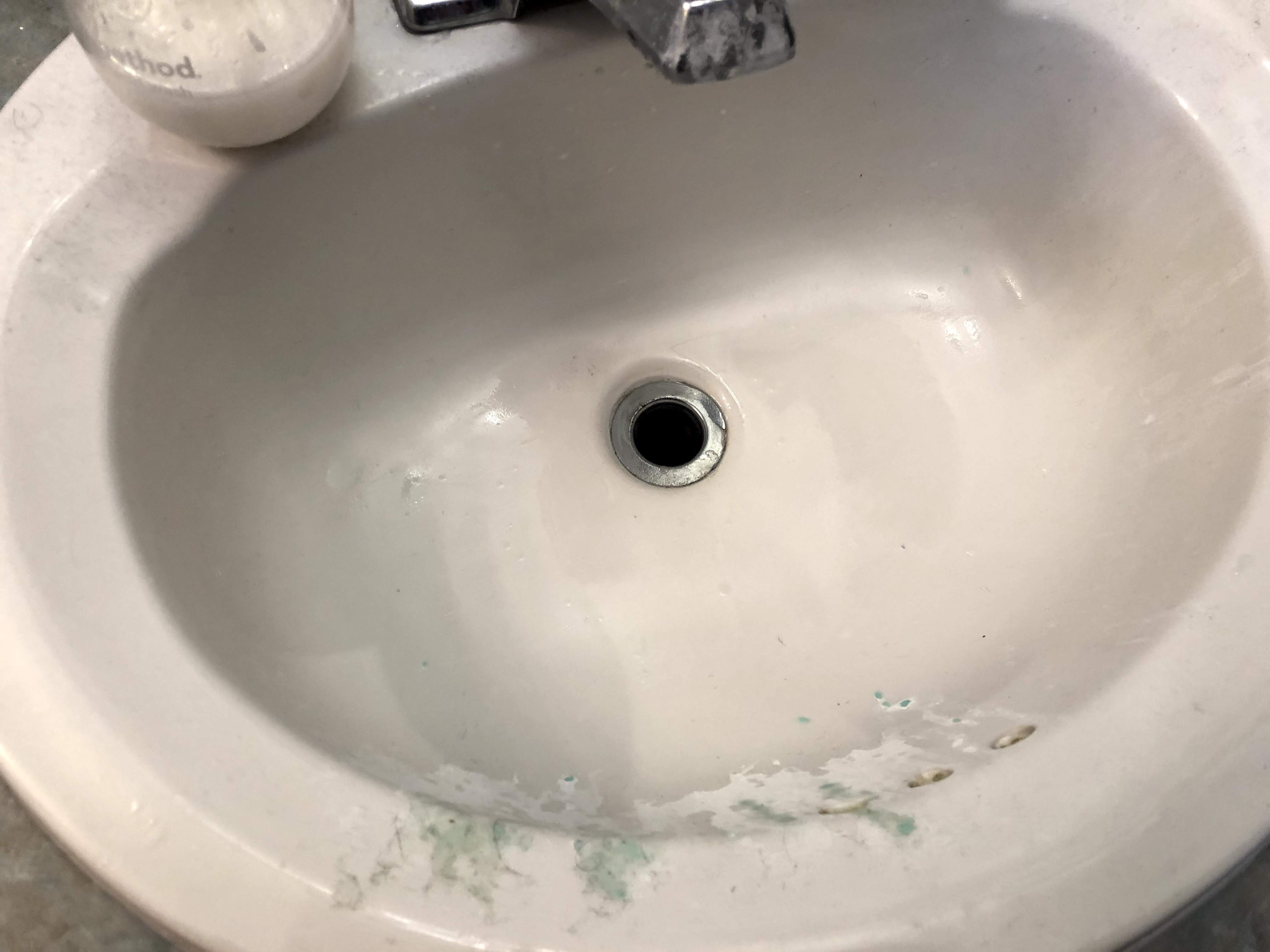 My sink — pictured above — is repository for all manner of post-clean-up residue: dried shaving cream, clotted beard stubble, bright green chards of fossilized toothpaste, the odd expectorated snot. Its banks are lined with deodorant and mouthwash and aftershave gel, my razor, tall and travel size shaving cream, and various ointments I neglect to use and that, thus, are coated with a gentle sussurance of dust.