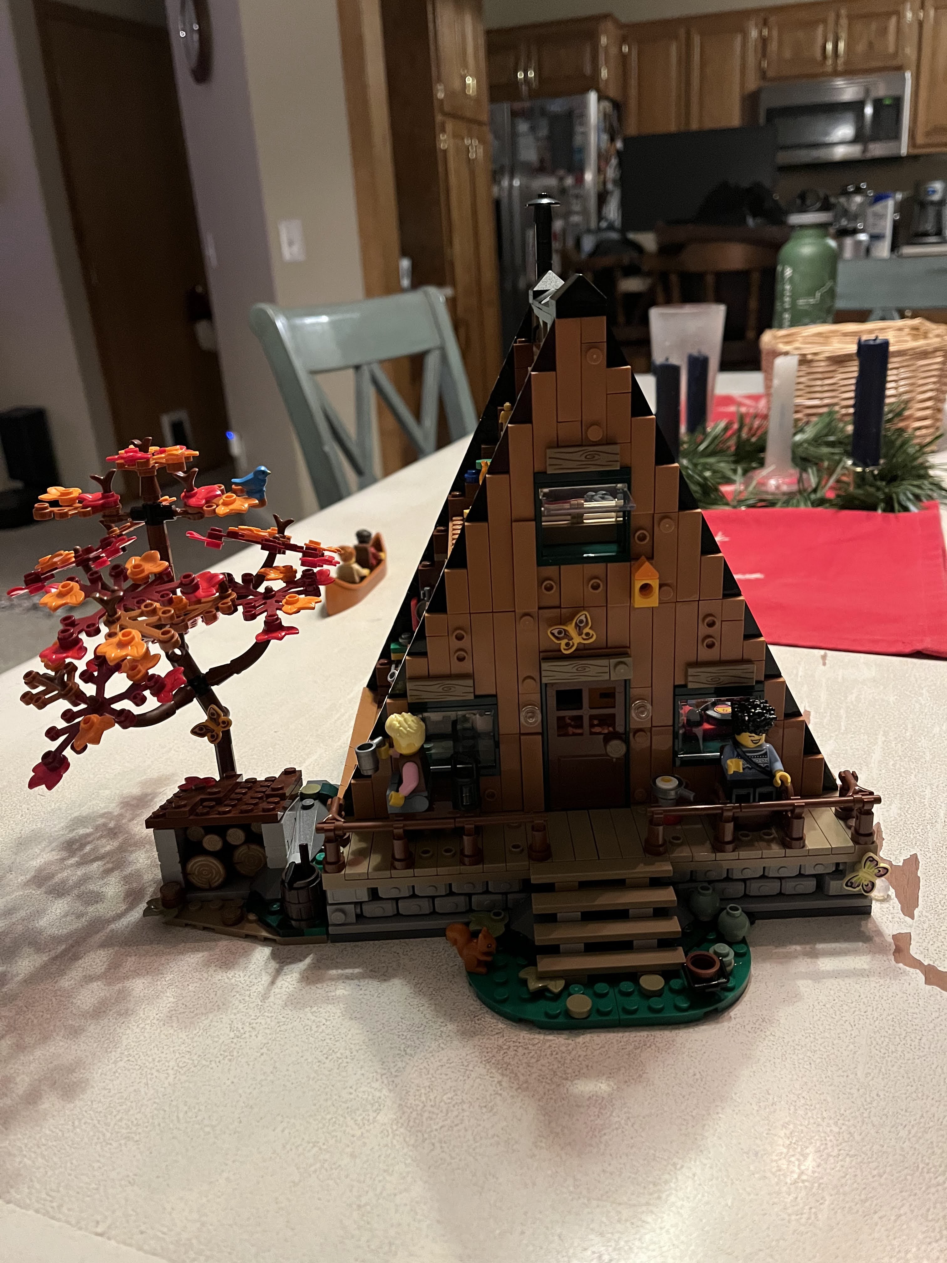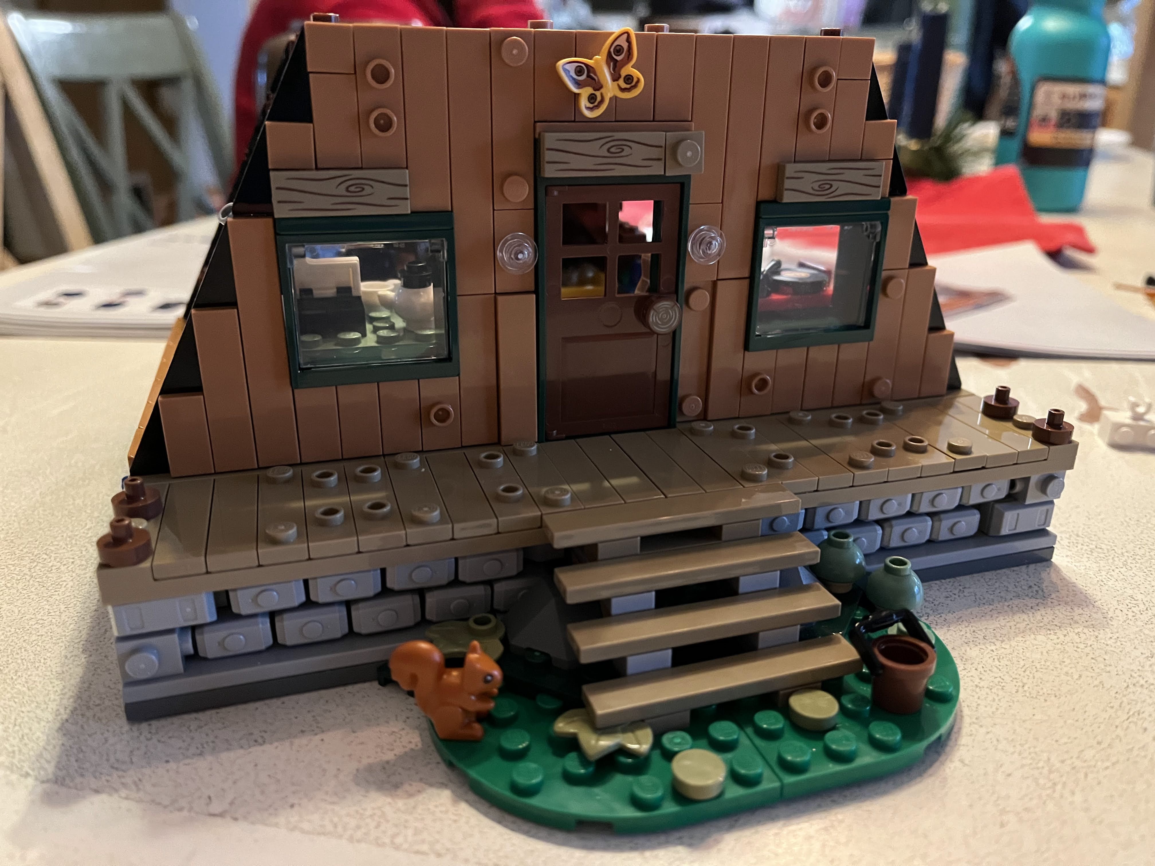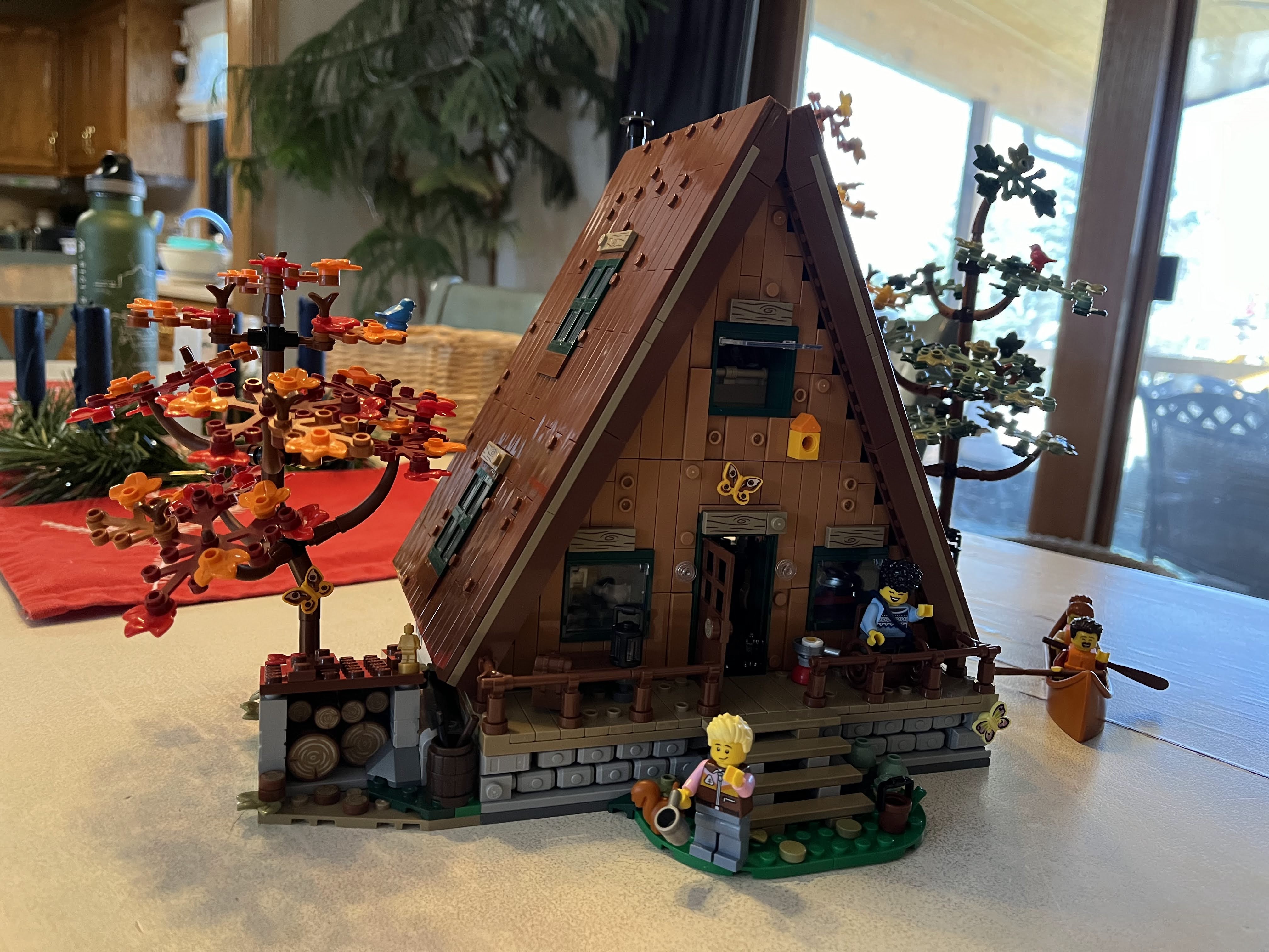 Now, the kids will note that the sets Dad has chosen, including this Christmas’s A-Frame Cabin, tend to mirror my other old-man obsessions, which include designing and racing cars on X Box’s Forza Motorsport and Forza Horizon games, and building endless cabins and castles and houses in their Minecraft worlds. Hey, at least I’ve avoided commemorating my work trips with a Chinese junk or London bus, or my astronomy hobby with the Apollo lander and Saturn V rocket sets. (Though these are on my list. Shhhhhh.)