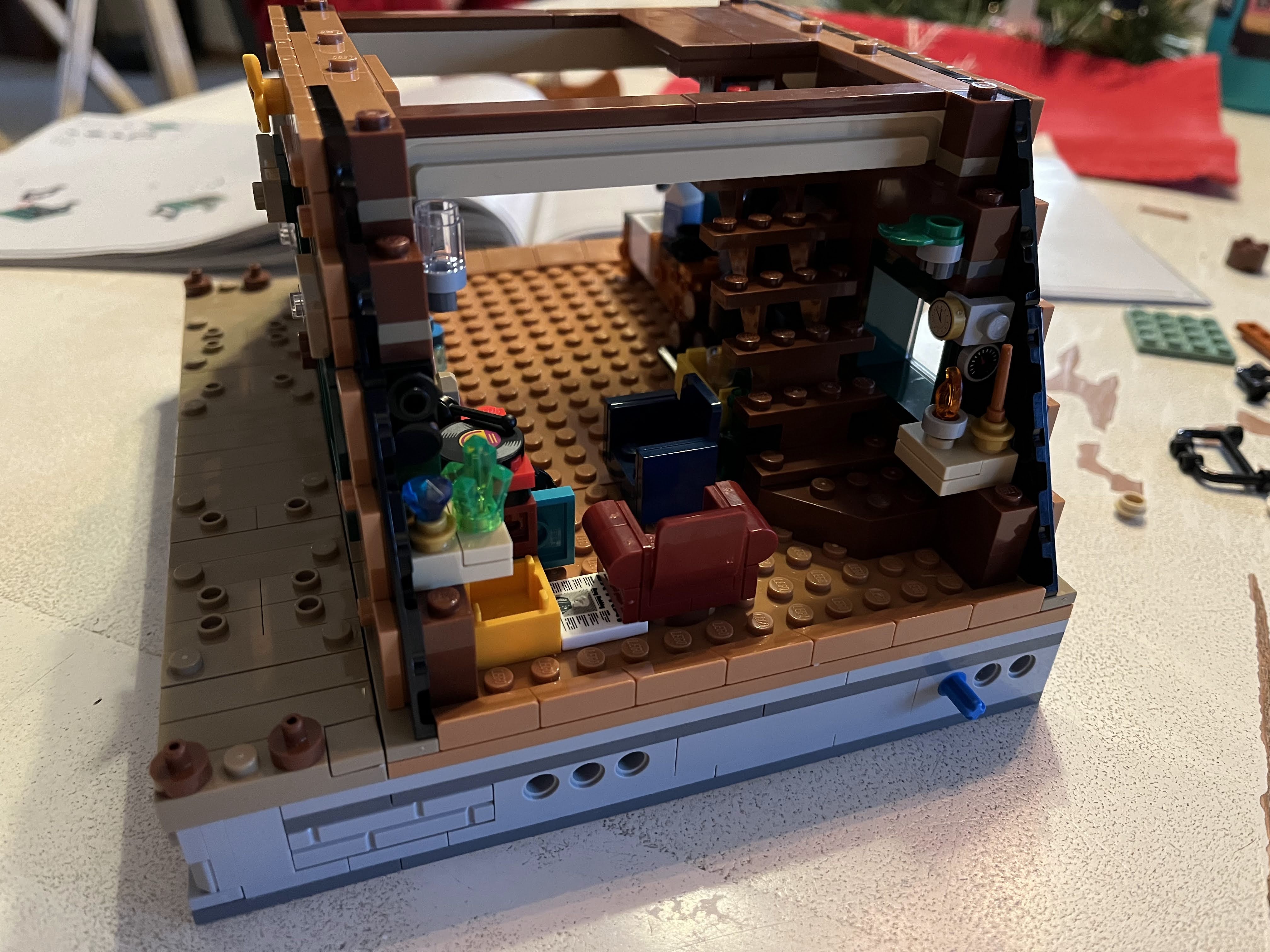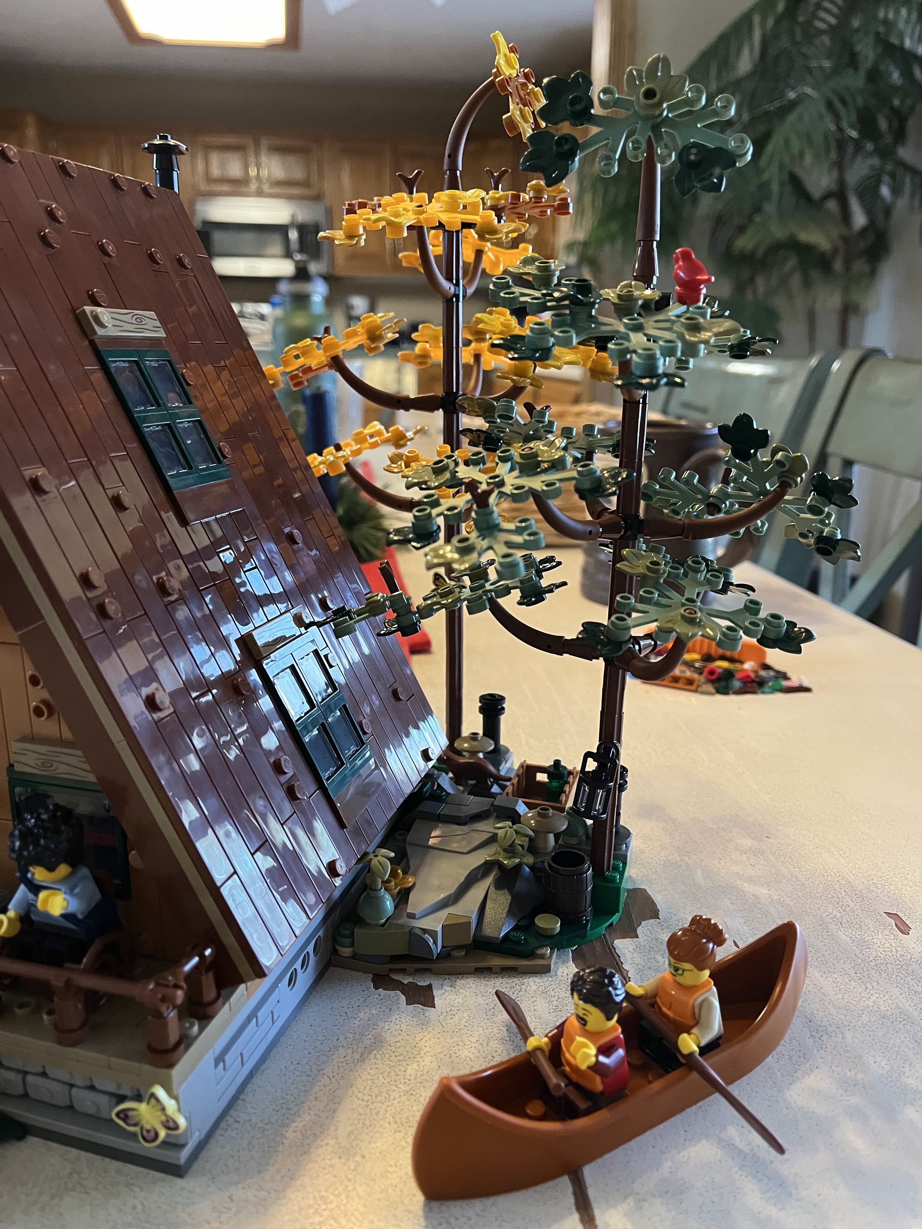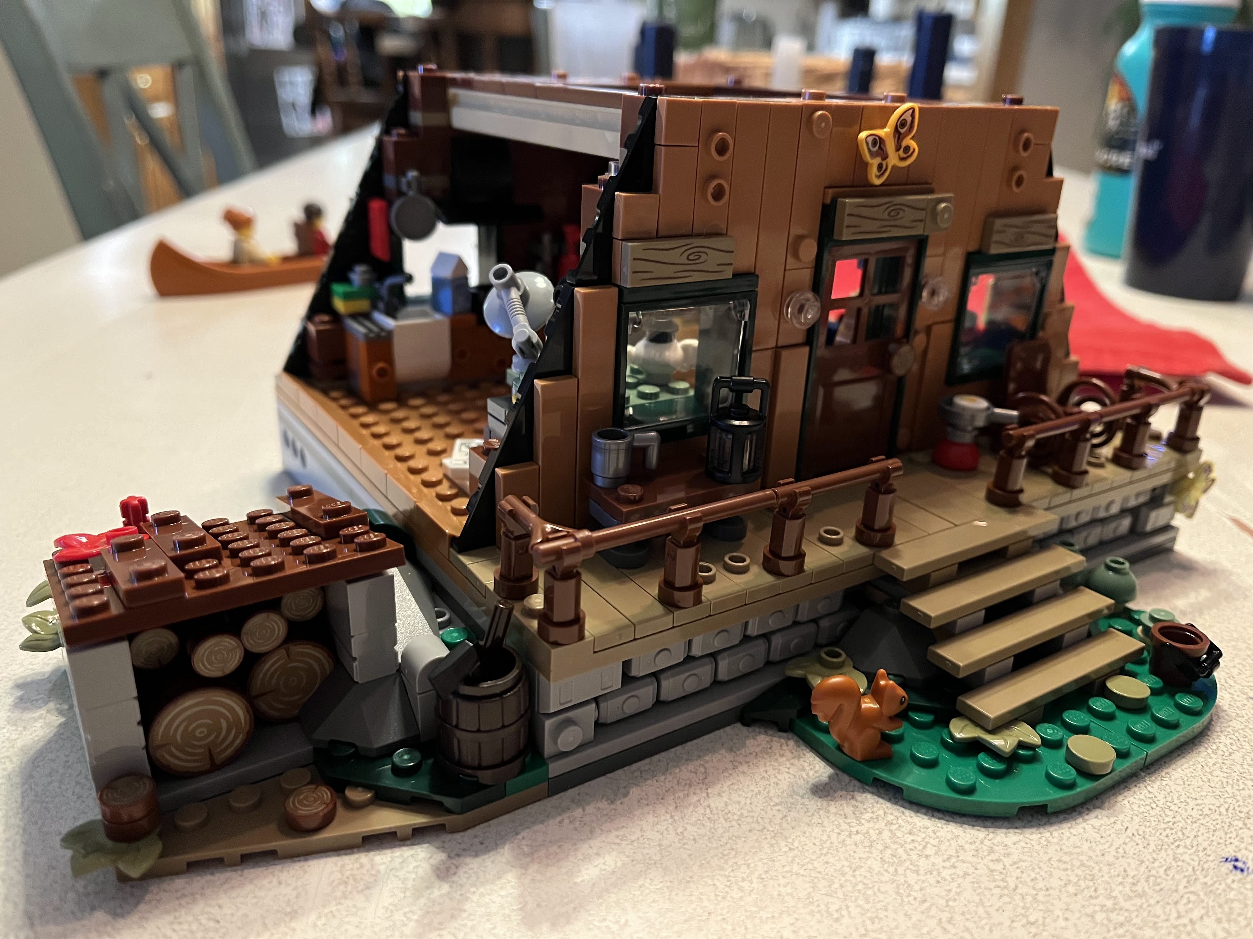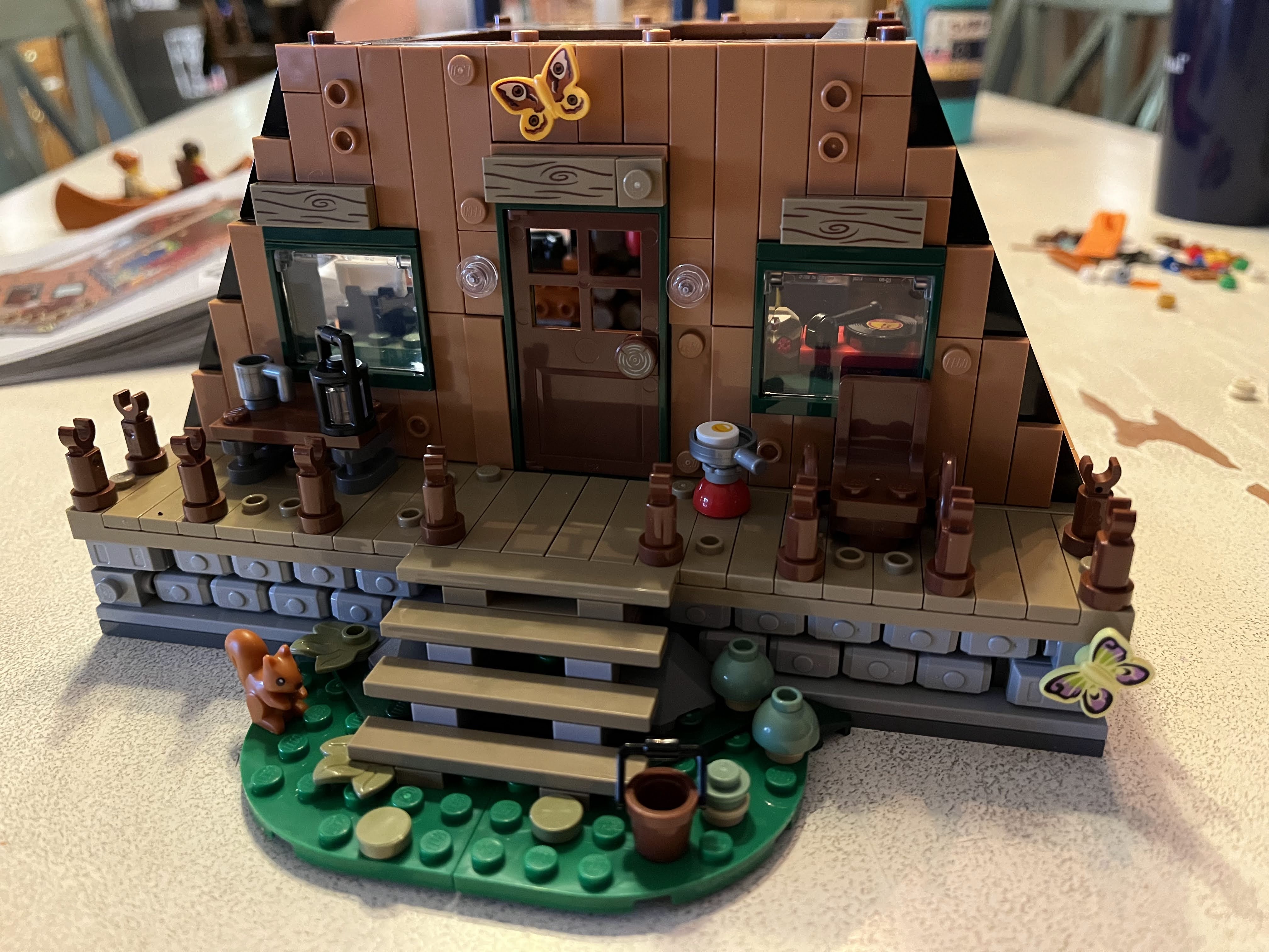Now, the kids will note that the sets Dad has chosen, including this Christmas’s A-Frame Cabin, tend to mirror my other old-man obsessions, which include designing and racing cars on X Box’s Forza Motorsport and Forza Horizon games, and building endless cabins and castles and houses in their Minecraft worlds. Hey, at least I’ve avoided commemorating my work trips with a Chinese junk or London bus, or my astronomy hobby with the Apollo lander and Saturn V rocket sets. (Though these are on my list. Shhhhhh.)