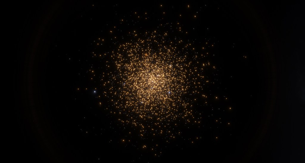 Today, we take a look at the M2 globular cluster in the constellation Aquarius from “here” – as photographed by the Seestar camera scope from my backyard in North America; from “there,” by flying through space 37,000 light years to see the cluster up close in the simulation software, Space Engine; and again “in my chair,” as I tap more deeply into Space Engine to get a unique view of M2 only an astronaut, or an extra terrestrial, could otherwise see!